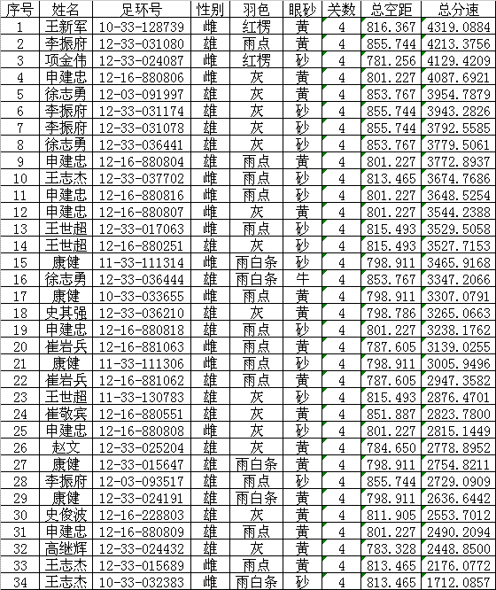 “中华龙杯”锦标赛四关鸽王成绩,无异议24小时生效。